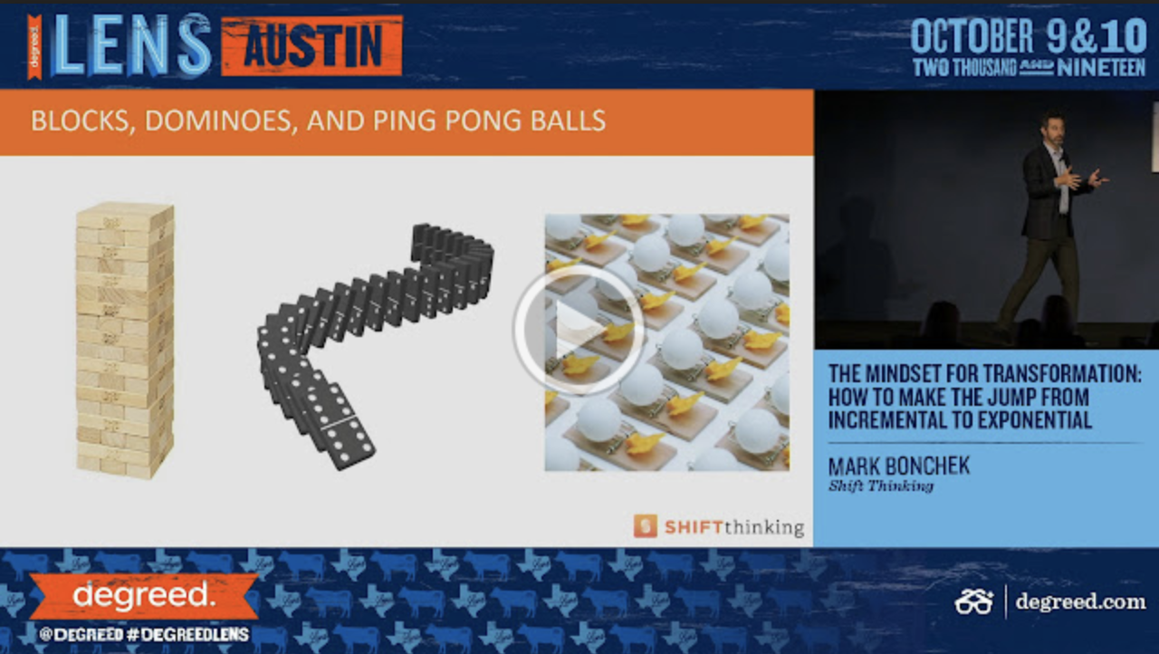 Exponential growth requires an exponential mindset. Incremental is satisfied with 10% better. Exponential is out for 10X and something fundamentally different.